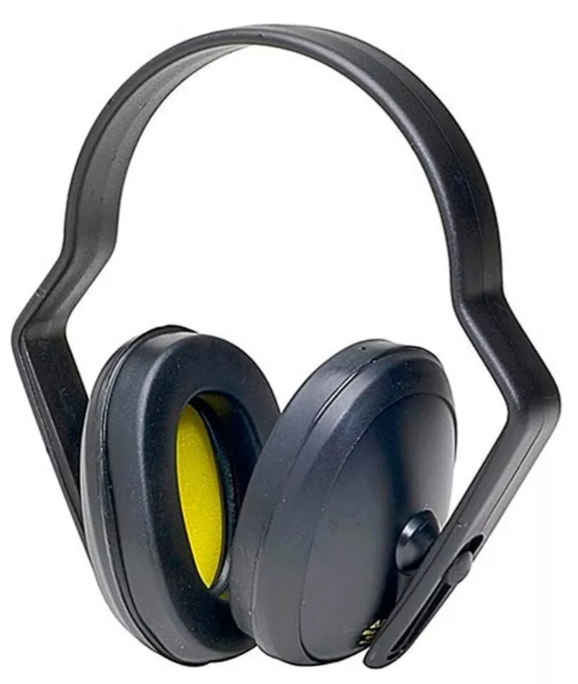 CA: 10468 - Protetor auditivo circum-auricular, formado por um arco plástico ligado a duas conchas plásticas revestidas internamente por espuma, que ficam sobre as orelhas.